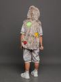 Костюм состоит из стилизованного комбинезона с капюшоном Полиэстер, хлопок, полотно ворс Трикотажное, отделка-иск Трик Мех, 50 хлопок, 50 полиэстер.