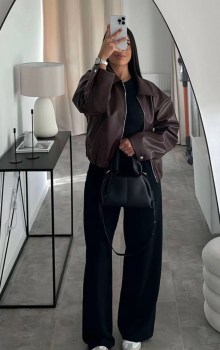 Кожаный бомбер