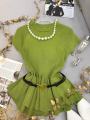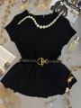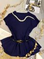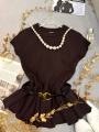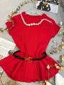 Трикотажная кофта с баской ремень в комплекте.