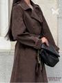 Длинный тренч из матовой замша велюр, который делает силуэт собранным за секунду.