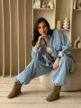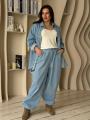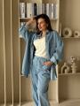 Костюм рубашка брюки из плотного денима батал.