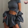 Основу комплекта составляет легкая, дышащая футболка с эргономичным кроем, идеально облегающая фигуру Шорты с эластичным поясом и продуманными карманами сочетают практичность с изысканностью Это идеальный выбор для тренировок или casual-выходов.