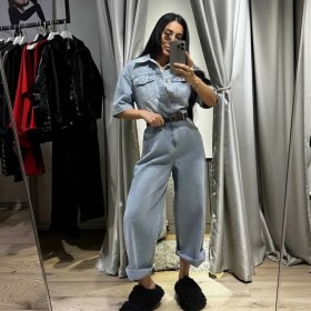Джинсовый комбинезон-идеальная вещь для повседневного образа Приталенный крой подчеркивает фигуру и скрывает недостатки Широкие брюки и облегающий верх обеспечивают свободу движений и добавляют элегантности!.