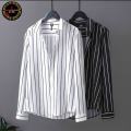 Трендовые шелковая рубашка в полоску.