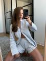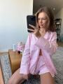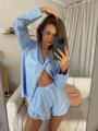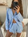 Лгкая рубашка в полоску и воздушные шорты создают расслабленный и женственный образ Свободная посадка дарит комфорт, а аккуратные детали добавляют эстетики.
