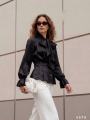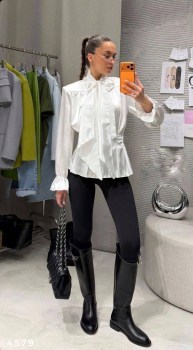 Блуза с акцентной драпировкой на талии и объемным бантом на шее Длина 59см / пог 47см Арт 4579.