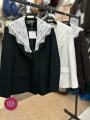 Стильный пиджак с кружевным воротником.