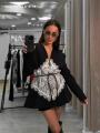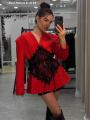 Стильный женский удлиненный пиджак с корсетом их кружевной отделки создаст неповторимый образ для праздничного и вечернего выхода!.