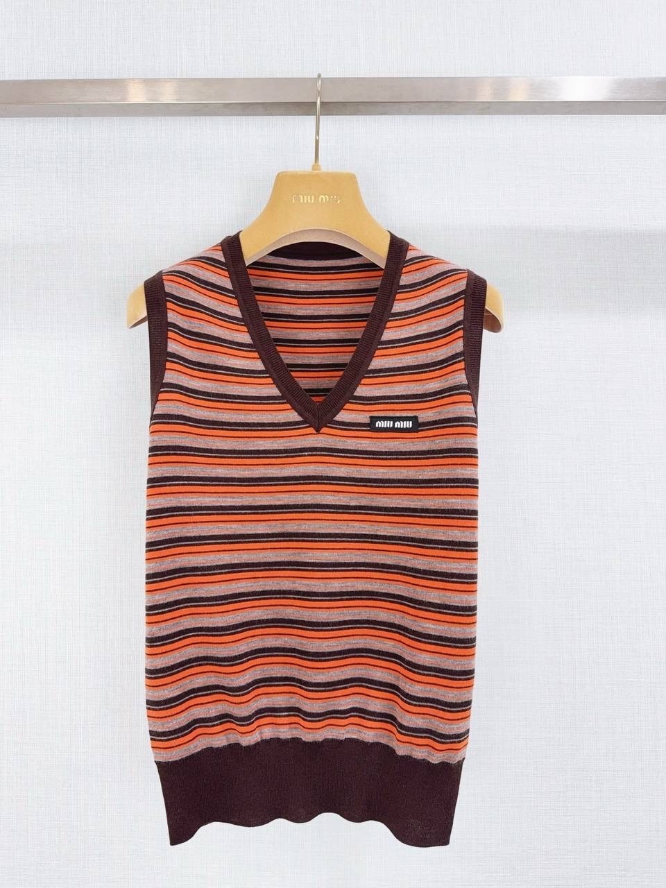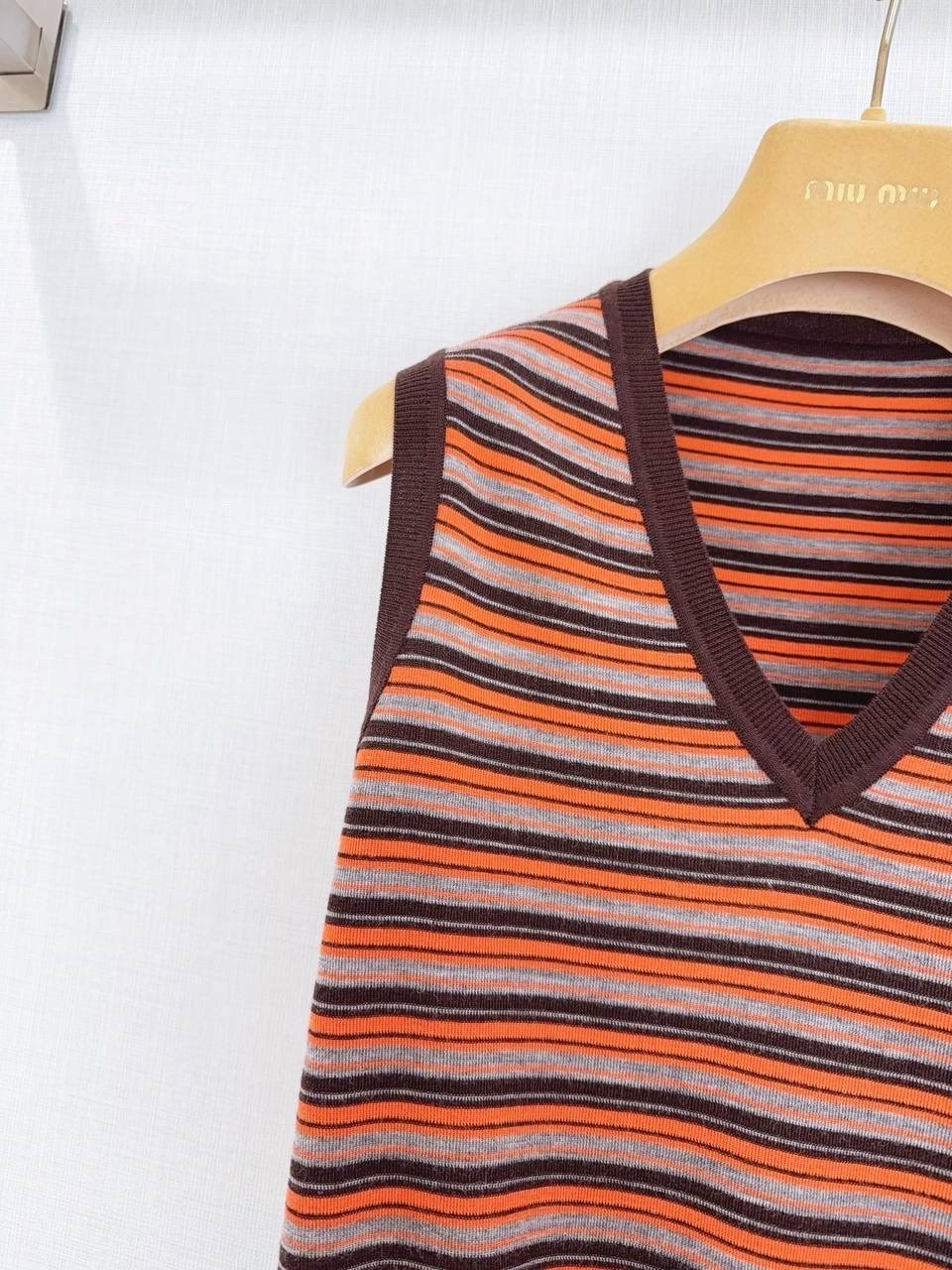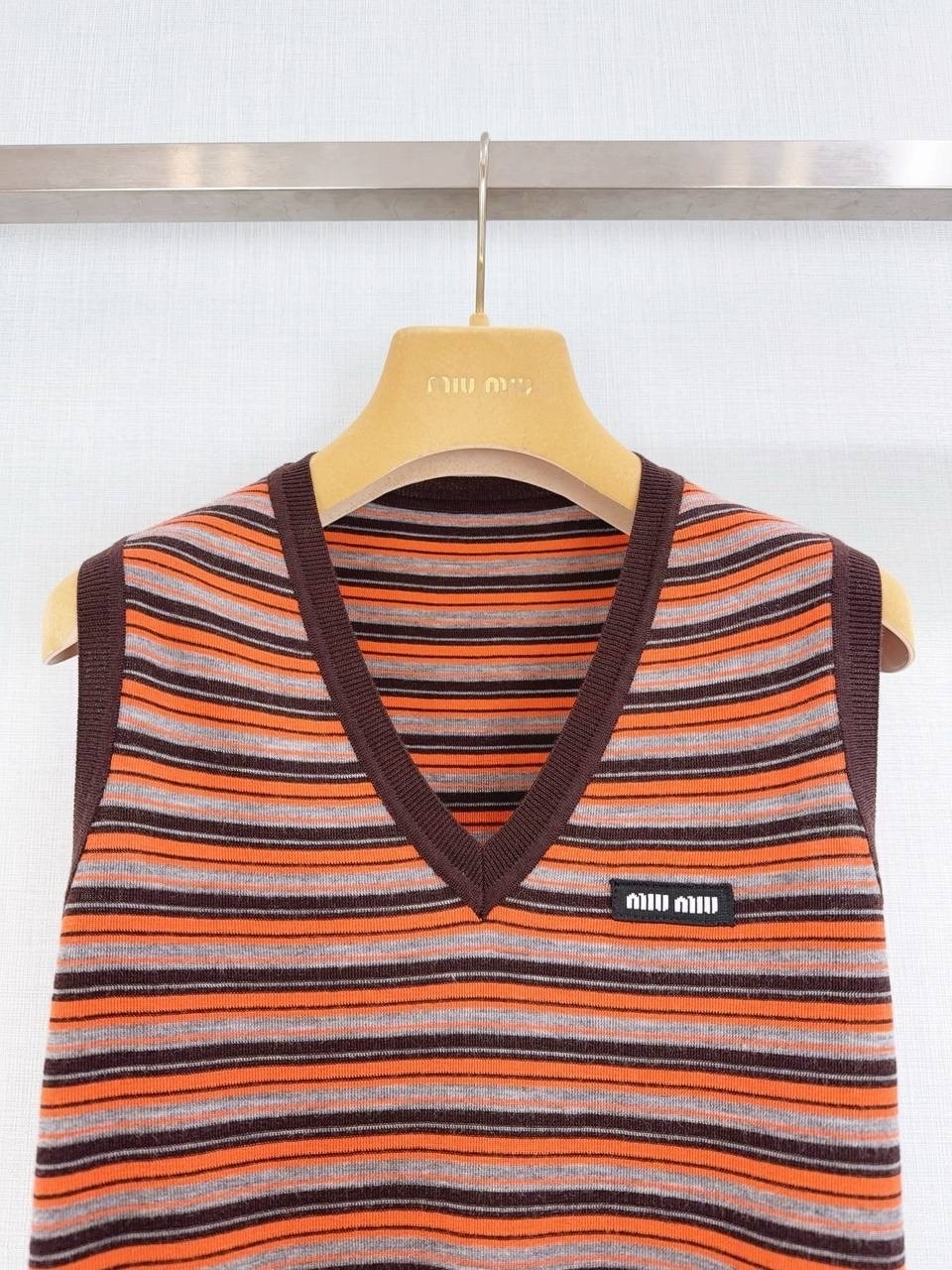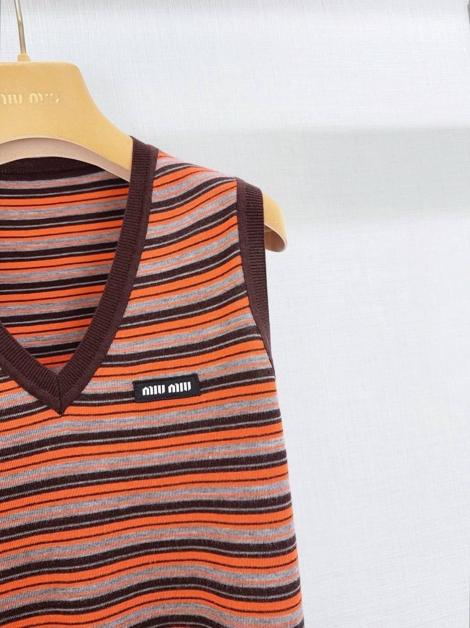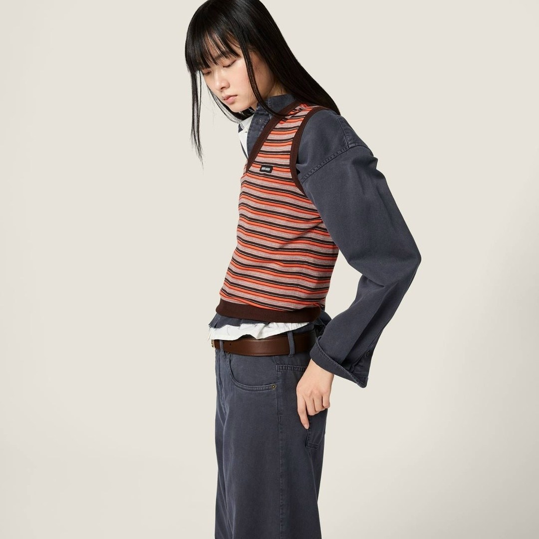 Цвет, рождающий настроение: сочетание дерзкого оранжевого и спокойного серого это именно тот контраст, который завораживает Полоска вечная классика, но в исполнении miu miu она обретает новое, динамичное звучание Этот жилет добавит акцент, который невозможно проигнорировать, но при этом сохранит ощущение утонченности.