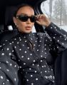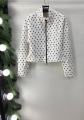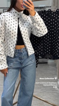 Стильный бомбер в горох, приталенный силуэт и приспущенное плече доступен в размерых: 42, 44.