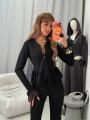 Изящный костюмдвойка укороченная приталенная кофта с кружевными рукавами и гармоничная нижняя часть Нежный кружевной акцент придат образу романтичность, а облегающий силуэт подчркивает линию талии идеальный выбор для тех, кто ценит утончнную женственность с ноткой дерзости.