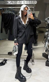 Классический пиджак с изысканным капюшоном из гипюра.