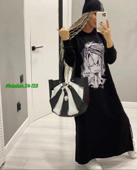 Тплые платья на флисе с принтом цвет чрный.