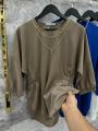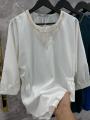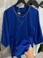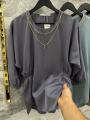 Стильная блузка свободного кроя с съемным украшением.