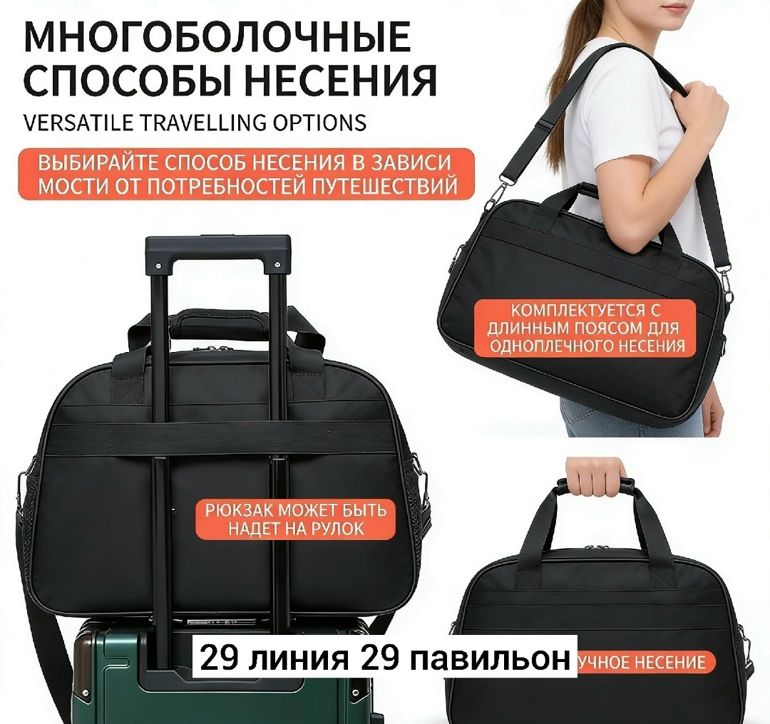 Эта многофункциональная дорожная сумка из прочной и водонепроницаемой тканьи oxford идеально подходит как для коротких поездок, так и для частых путеществий.