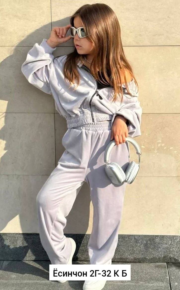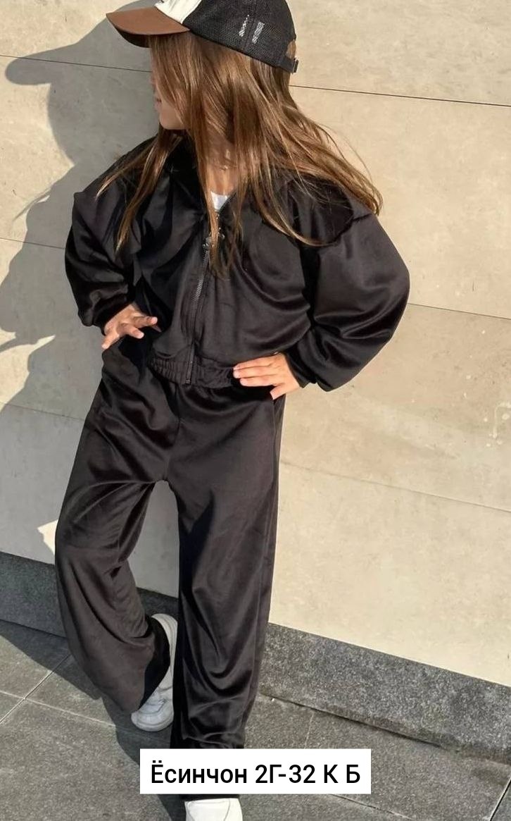 Велюровый костюм для девочки спортивный капюшон и палаццо.
