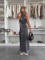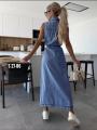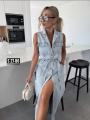 Стильное платье без рукавов с поясом.