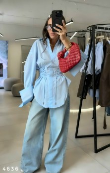 Хлопковая рубашка с шнуровкой по бокам Длина от плеча 72см по спинке / пог 46см Арт 4636.