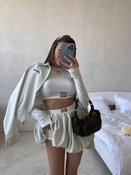 Комплект: куртка-бомбер юбка-шорты Изготовлено из приятной на ощупь тканьи с эластичным поясом Идеально подходит к нашему набору чарли.