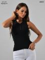 Однотонный топ в рубчик.