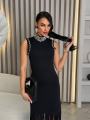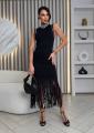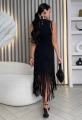 Элегантные ворот и рукава, обработанные бусинками, добавляют нотку шика Низ платья оформлен бахромой это настоящий тренд!.
