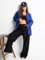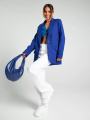 Женский пиджак оверсайз, выполнен из костюмной тканьи отличной плотности, прямого кроя Этот однобортный свободный блейзер с прорезными карманами не только скроет все возможные несовершенства, но и визуально вытянет силуэт, придавая образу элегантность и стройность.