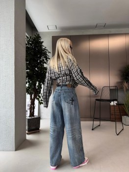 Стильные прямые джинсы chrome hearts premium качества, с эффектом потертости, высокая посадка идеально подчеркивает линию талии, модель выполнена из 100 натурального мягкого хлопка, идеальная посадка, в комплекте пояс.