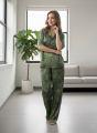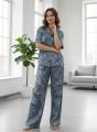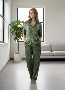 Легкий, струящийся комплект из шелка рубашка с коротким рукавом и широкие брюки-палаццо Свободный крой, благородный блеск, невесомое прикосновение к телу.