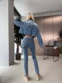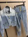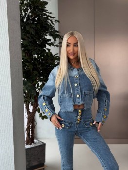 Стильный джинсовый костюм schiaparelli premium качества, в комплекте джинсовый пиджак джинсы скинни, изготовленный денима премиум класса, он хорошо тянется, но при этом хорошо держит форму, два накладных рабочих кармана, дорогая фурнитура, трендовый оттенок с эффектом потертости.