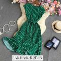 Платье летнее плиссированное в горошек, платье принцессы с коротким рукавом, модное женское платье средней длины на бретельках с завышенной талией для женщин.