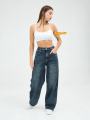 Стильные широкие джинсы багги