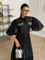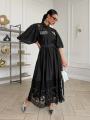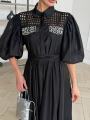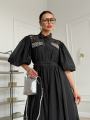Длина платья по спинке 136 см, рукав фонарик длина 37 см.
