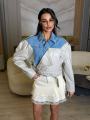 Джинсовая мини юбка с кружевной отделкой снизу Очень нежно и стильно.