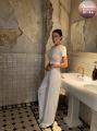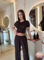 Прямые брюки, также выполненные из нежной вискозы, дополняют образ, создавая гармоничный и завершенный силуэт Их прямой крой визуально удлиняет ноги, придавая стройность и утонченность Идеально сбалансированные пропорции делают этот комплект универсальным рещением для повседневных выходов.