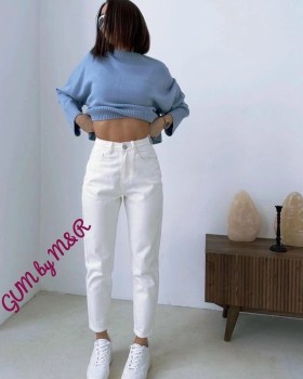 Джинсы с высокой посадкой белые мом бананы.