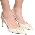 Смелые и безупречно выверенные туфли-лодочки с открытой пяткой, пошитые из натуральной кожи молочного оттенка, придадут выразительность любому образу благодаря заострнному мысу А тонкие ремешки на щиколотке фиксируют линию с графичной точностью Модель на высоком каблуке-шпильке завершается кожаной стелькой и объмными логотипами на союзке.