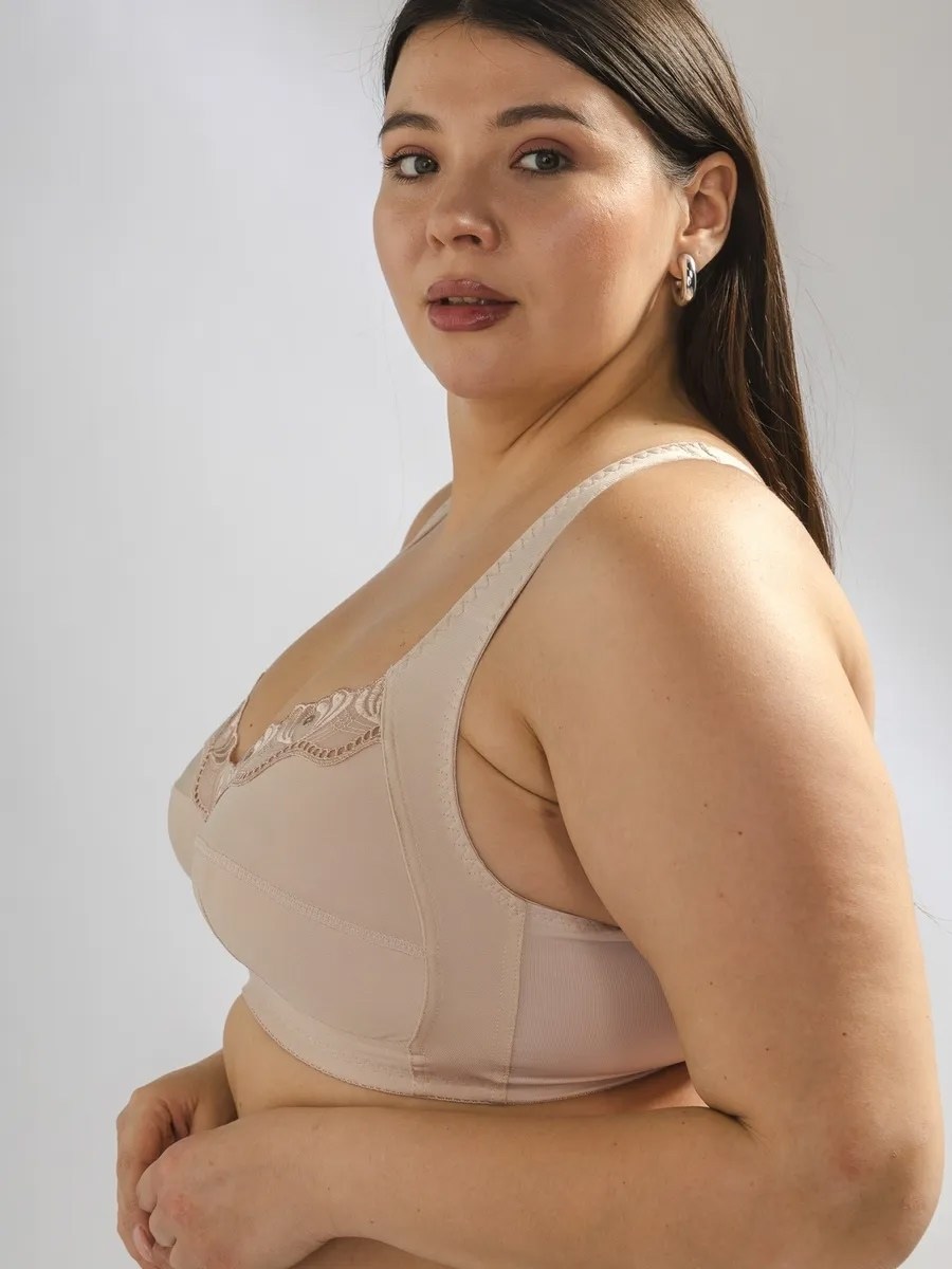 Бюстгальтер минимайзер с мягкой чашкой т-образного кроя и вышивкой Верхняя часть чашки украшена неэластичной вышивкой.