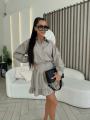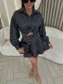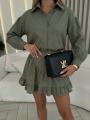Новинки женские костюм двойка рубашка с юбкой свободной крой юбкой с боком молний живое фото.