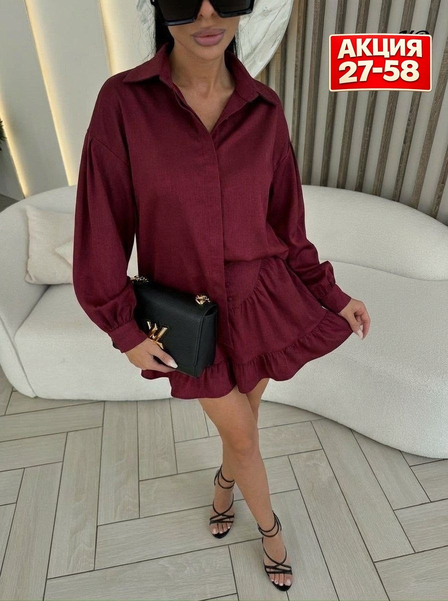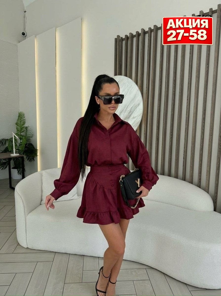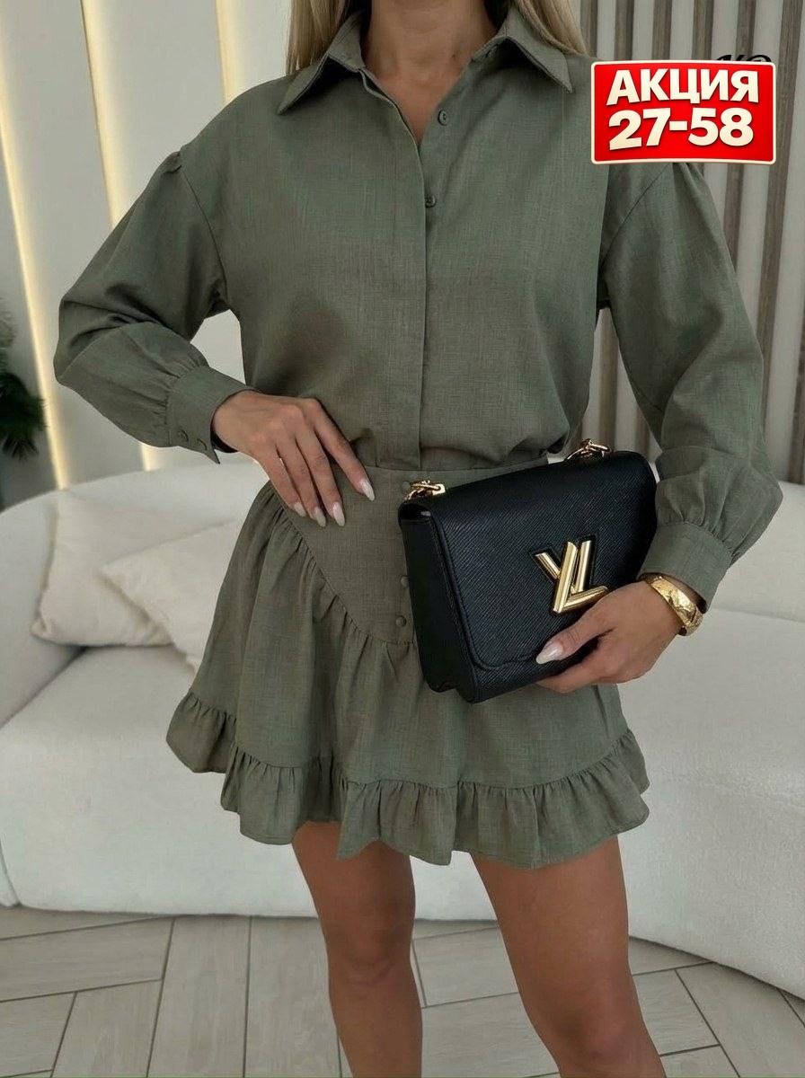 Новинки женские костюм двойка рубашка с юбкой свободной крой юбкой с боком молний живое фото.