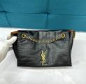 В весенне-летнюю коллекцию 2019 года энтони ваккарелло включил черную сумку monogram kate Модель из гладкой мягкой кожи закрывается на магнитный замок На внешней и внутренней стороне широкого клапана золотистая монограмма кассандра, составленная из инициалов ива сен-лорана В основное отделение поместятся смартфон, ключи и кошелек В комплекте регулируемый ремень-цепочка.