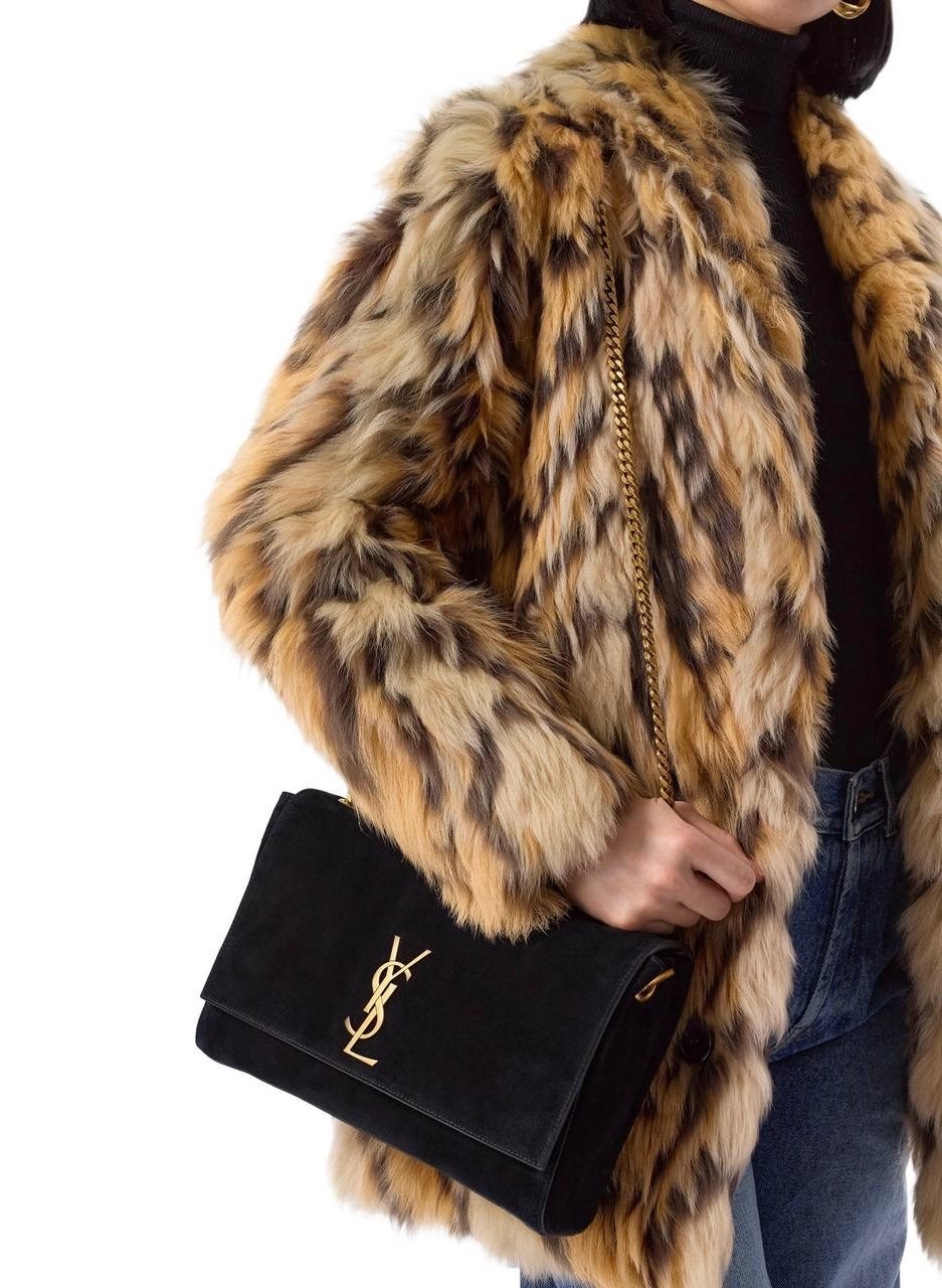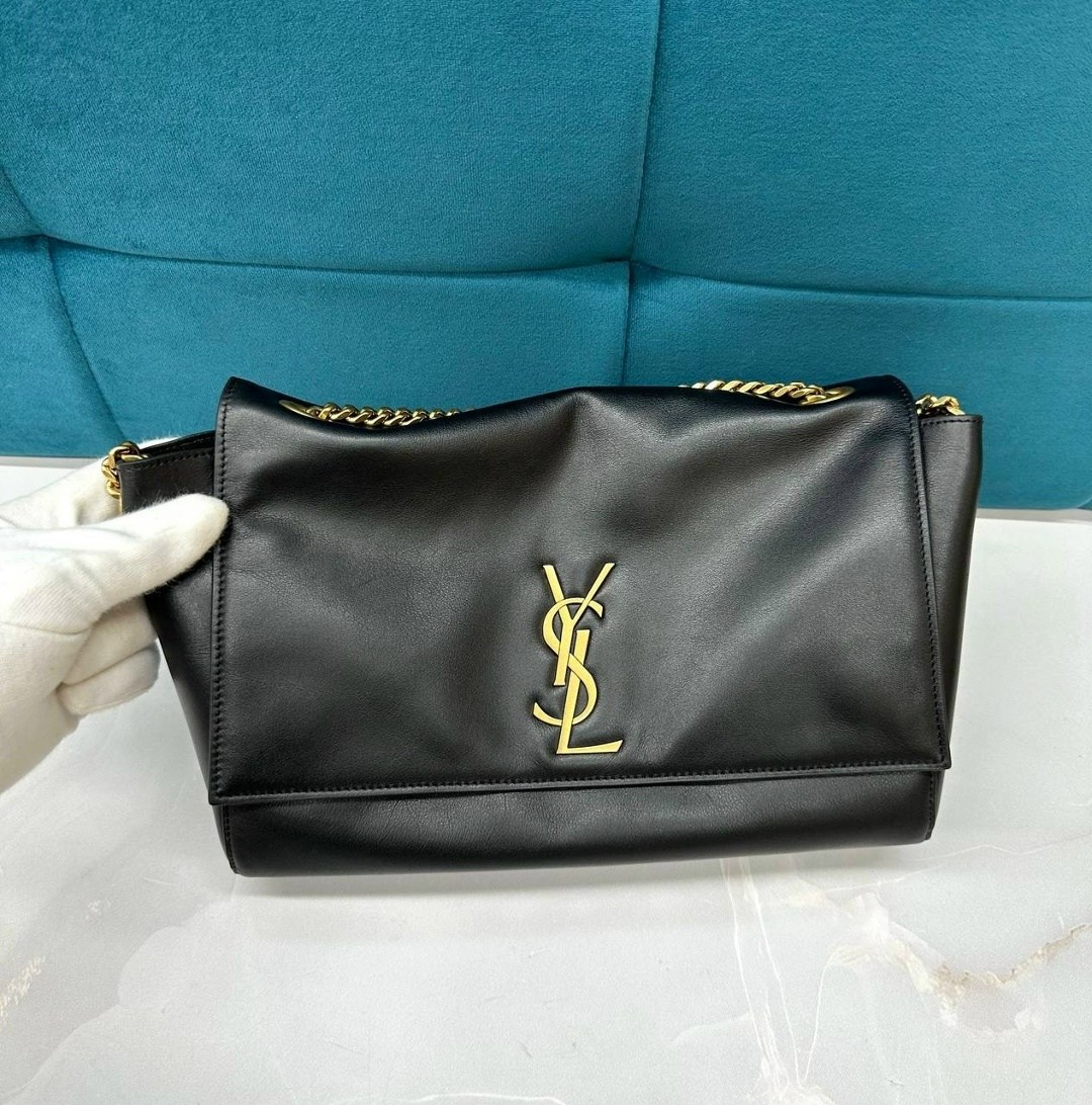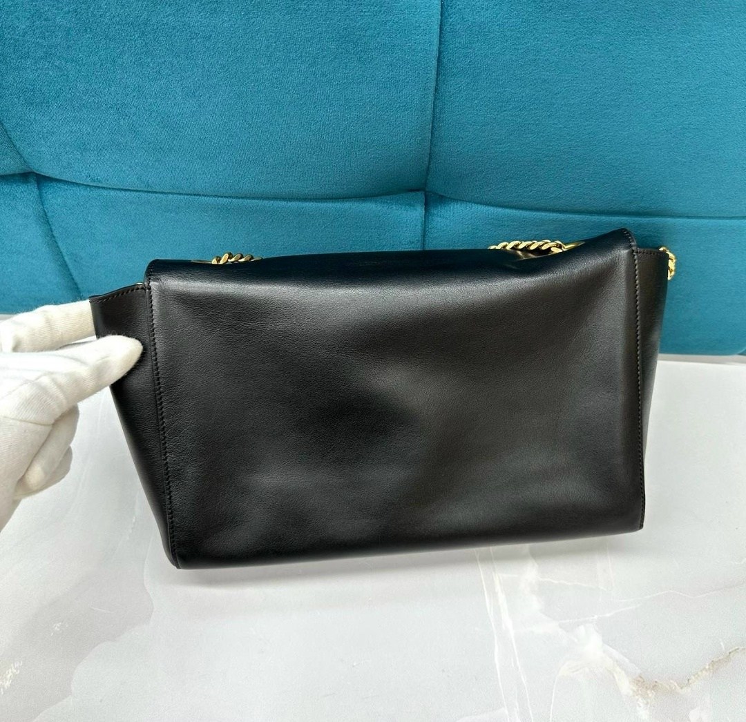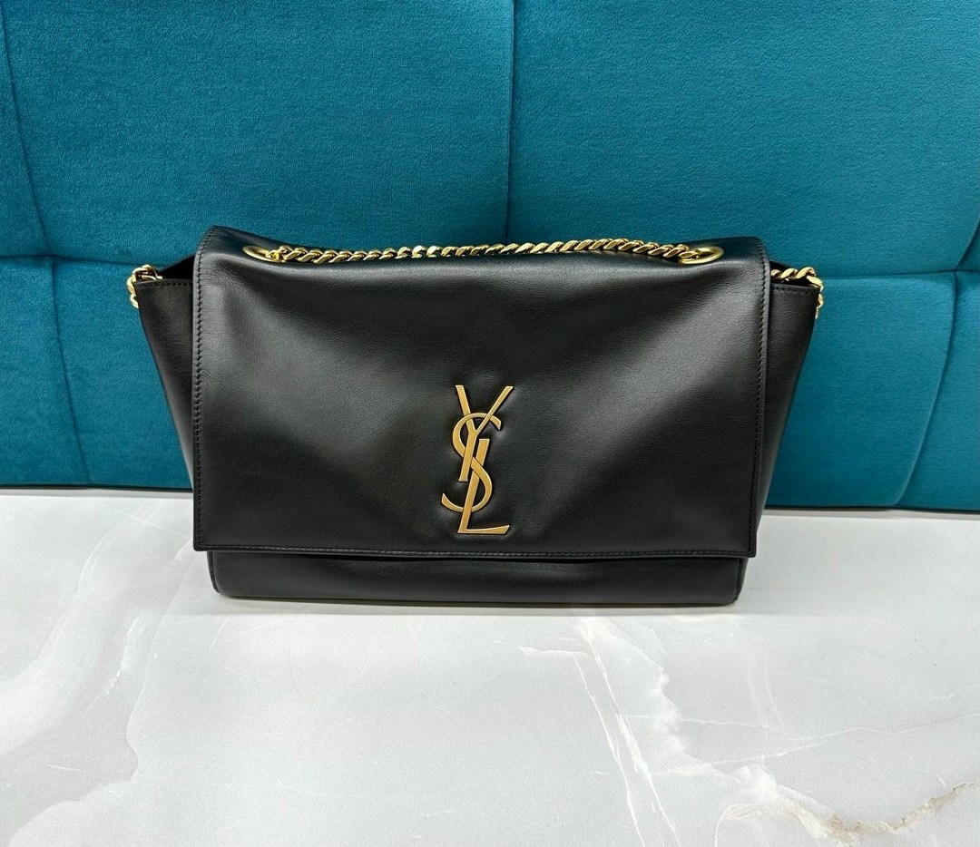 В весенне-летнюю коллекцию 2019 года энтони ваккарелло включил черную сумку monogram kate Модель из гладкой мягкой кожи закрывается на магнитный замок На внешней и внутренней стороне широкого клапана золотистая монограмма кассандра, составленная из инициалов ива сен-лорана В основное отделение поместятся смартфон, ключи и кошелек В комплекте регулируемый ремень-цепочка.