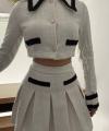 Стильный комплект-двойка: плиссированная юбка и укороченный пиджак с контрастной отделкой Элегантный крой и современный дизайн создают эффектный образ, который подчеркнт женственность.