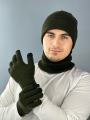 Шапки снуд перчатки Мужские набор тройка распродажа.
