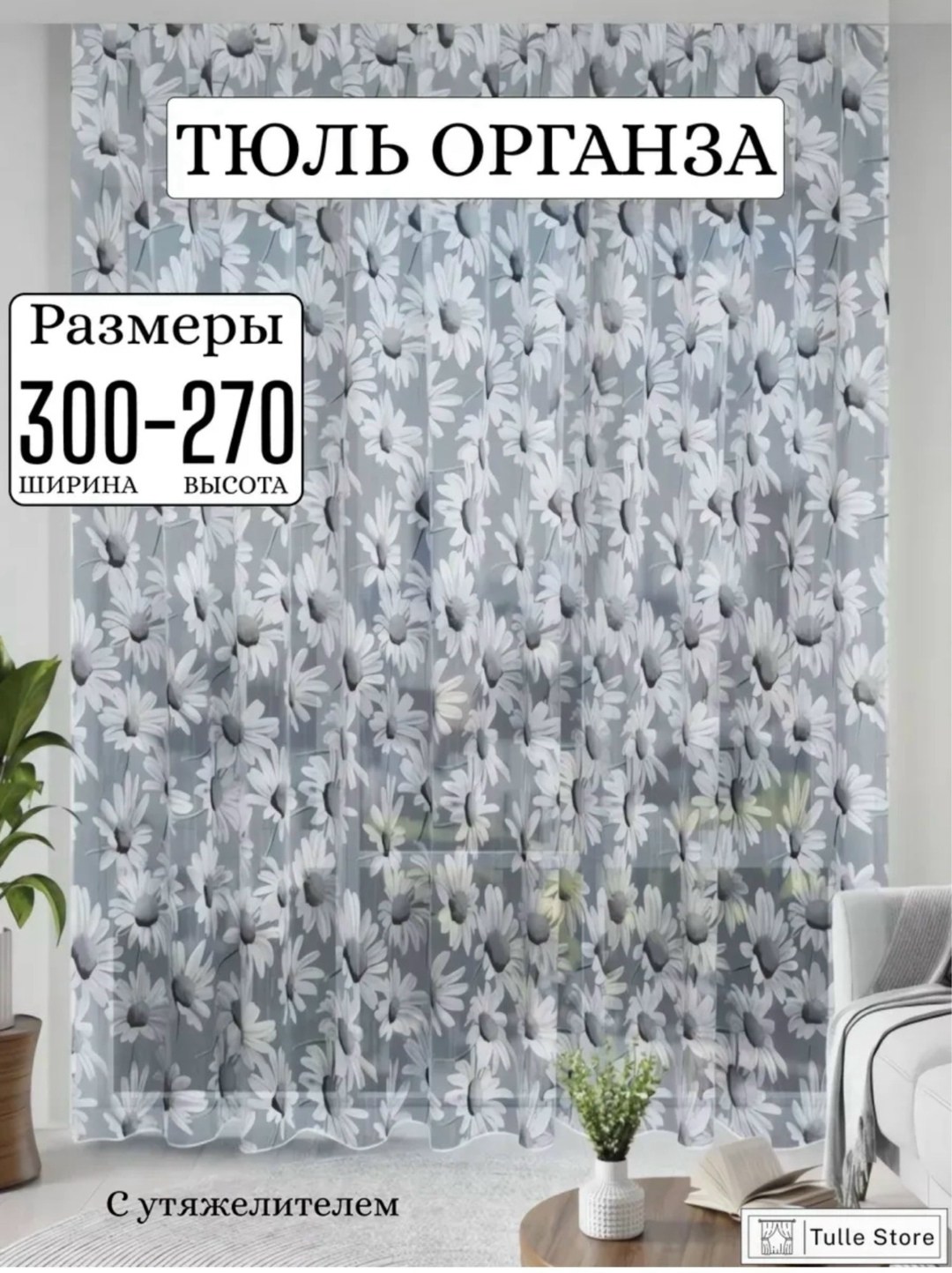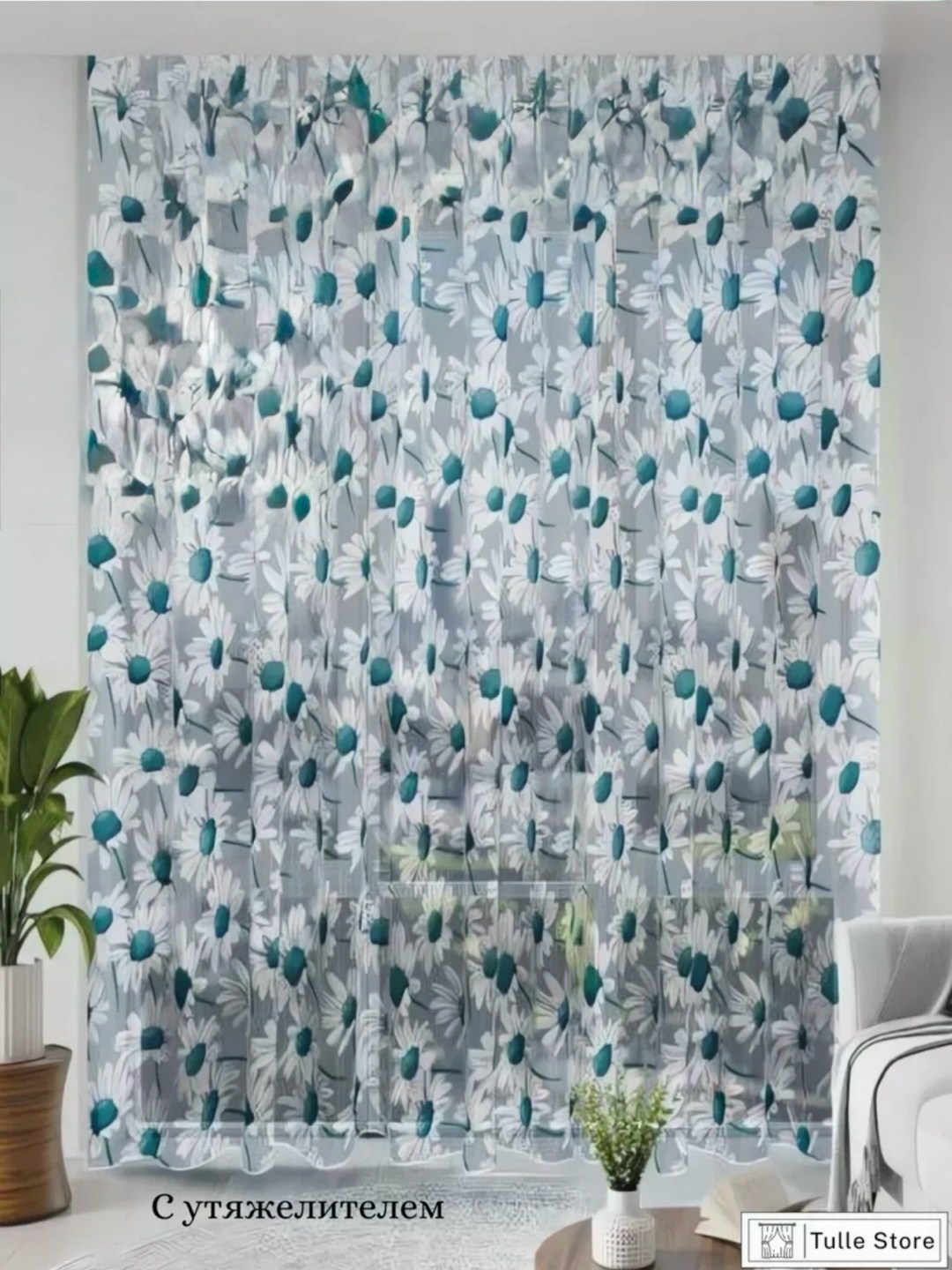 Тюль органза ромашки готовые варианты.