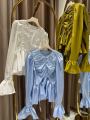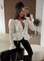Длина - 60 см, длина рукава - 77 см, на пуговицах, пуговицы рабочие, на груди сборка.
