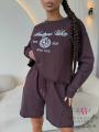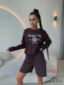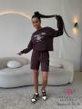 Стильный костюм в спортивном стиле, состоящий из укороченного свитшота и шорт Комфортный трикотаж, свободный крой и винтажный принт создают расслабленный и модный образ, идеально подходящий для повседневной носки и активного отдыха.