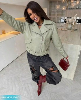 Самое стильное косуха с потертостями для твоих идеальных образов в трендом хаком оттенке.