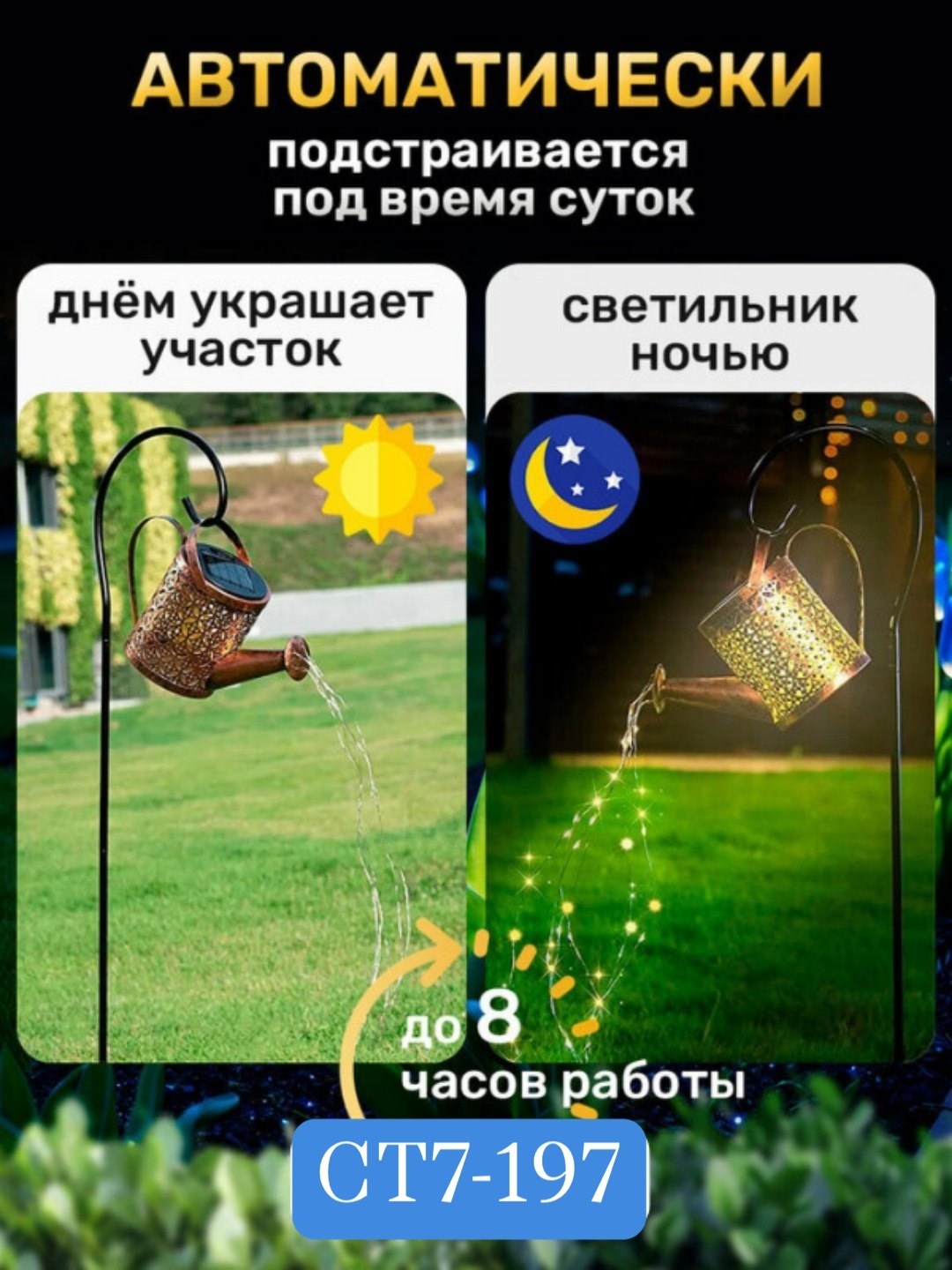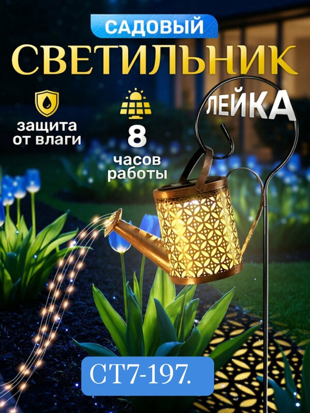 Солнечная лейка освещает водонепроницаемый уличный фонарь в форме ретро-чайника для внутренних дворов.