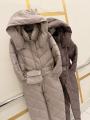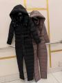 Стильный и тплый женский комбинезон с капюшоном и поясом, отлично подчркивает фигуру и защищает от холода Удобный крой, практичные карманы и качествонная простжка идеальный вариант на каждый день.