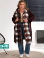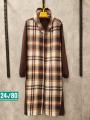 Женская кардиган в клетку с карманами.